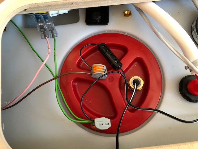 Kabel für 12V im Heck, hier: Masse vom Ansachluss der Tauchpumpe.