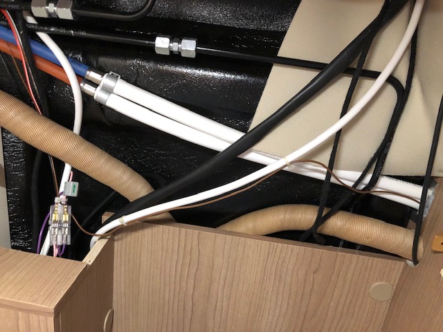 Kabel für 12V im Heck, hier: befestigtes Kabel hinter Kleiderschrank