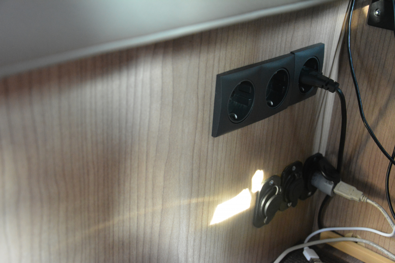 zusätzliche 220 V und 12 V Steckdosen im Sitzbereich und Heck