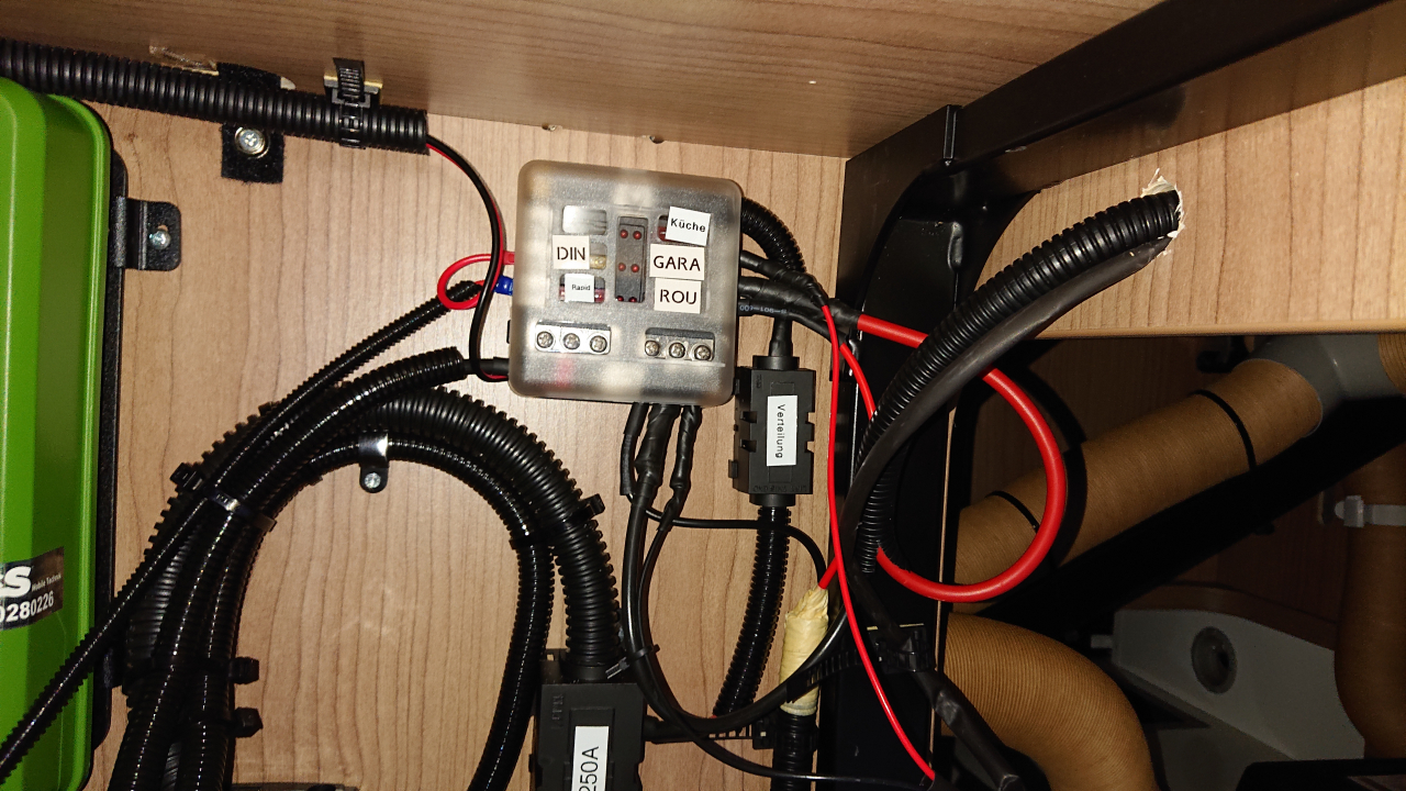 Für die zusätzlichen USB-Dosen und die Maxxfan haben wir eine Unterverteilung mit Sicherungen eingebaut.