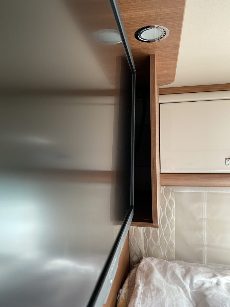 Blick von der Seite in den Einschubschacht zeigt noch genügend Platz nach Einbau des Halters und für Veränderungen der Schrägstellung des Bildschirms.
