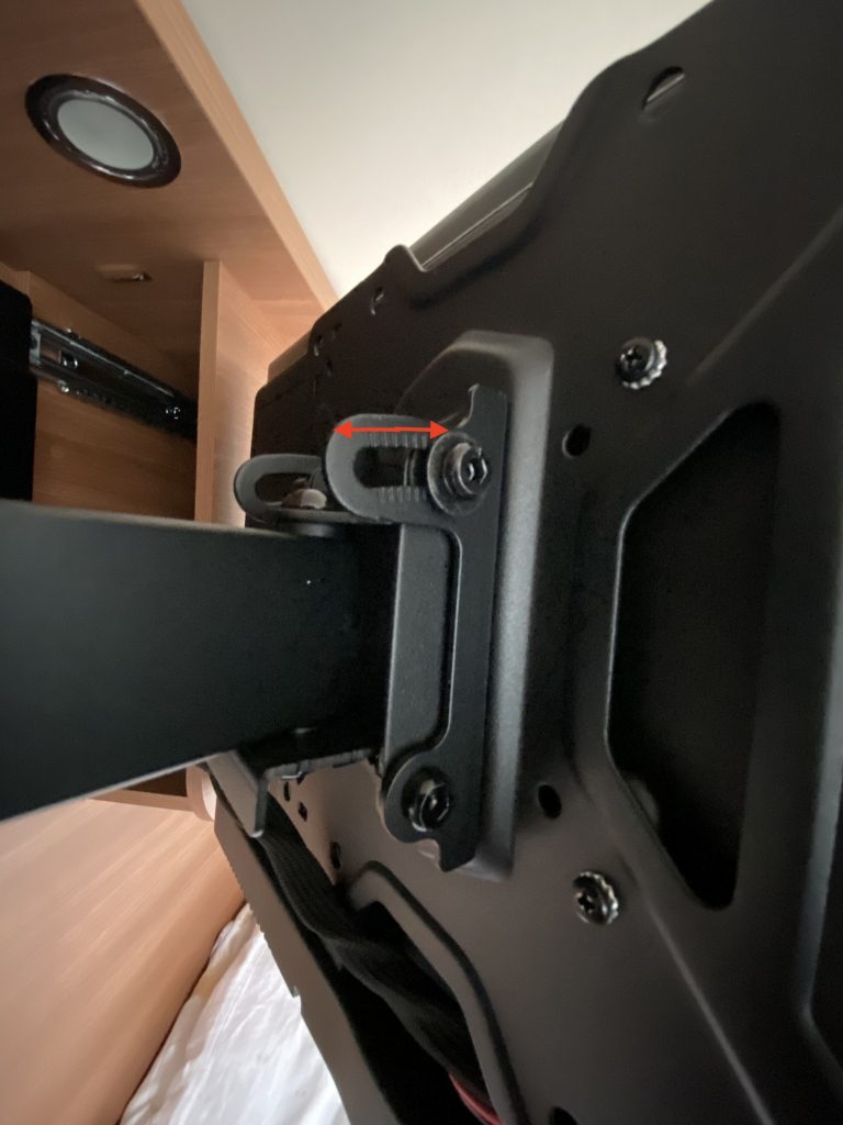 Seitlicher Blick auf die Neigungsverstellung bei leicht herausgezogenem Schwenkhalter.