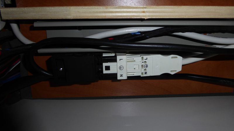 230V-Abzweigung. Hinter der Schublade unter dem Kühlschrank.